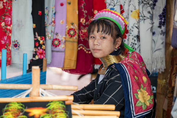 どちらかと言えば女性が首に金属の環をはめる首長族で知られている。