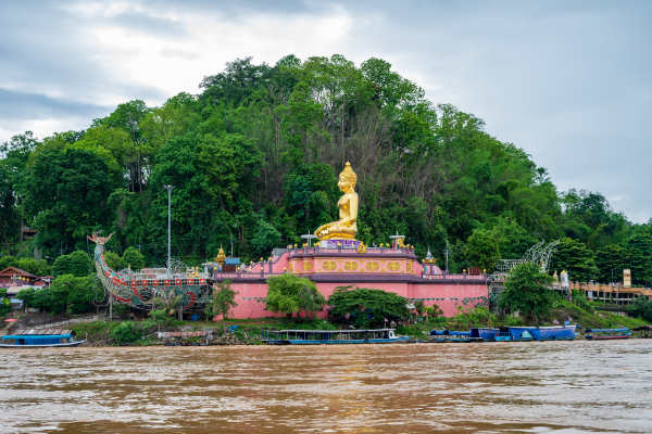 タイ、ミャンマー、ラオスの3ヵ国がメコン川で国境を接する山岳地帯である。