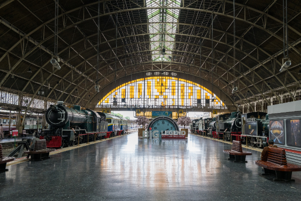 ホールには近郊線の発着案内があり、その先の旧・長距離線のホームは博物館になっていた。
