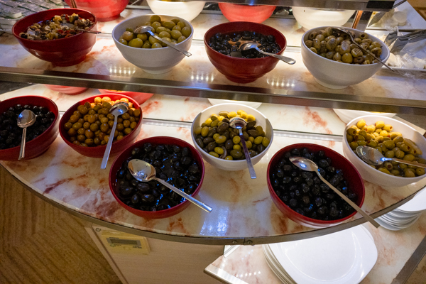 チーズとオリーブは10種類以上あり、また蜂蜜は蜂の巣そのものが置いてある。