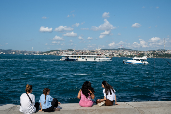 ボスポラス海峡からマルマラ海で出るポイントであり、多くの人たちが思い思いに夕刻を時間を楽しんでいる。