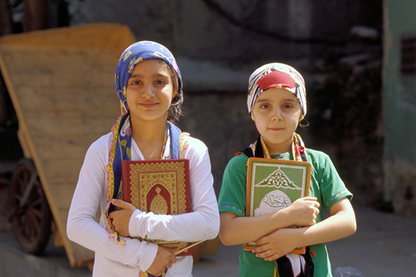 街中をブラブラと歩き、住宅地に迷い込み、子ども達を撮っていたら、2人の少女が現れてコーランを抱いてポーズを取ってくれた。シャッターを3回切ると、彼女達は手を振って去っていった。